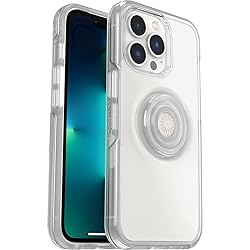 OtterBox 集成 PopSockets 支架纤薄手机保护壳,适用于Apple iPhone 13 系列,Otter + Pop Symmetry 系列,透明,iPhone 13 Pro |